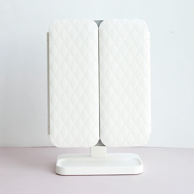 A: Leather double-door square bottom white cosmetic mirror (rechargeable) - tricolor light - infinite dimming