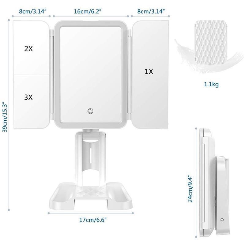 1. 180° x 2 Rotating design, easy and free to adjust the makeup mirror on the fixed table. The tri-fold design also offers you a dust-proof and anti-scratch-using experience, convenient for daily makeup and carry-on.